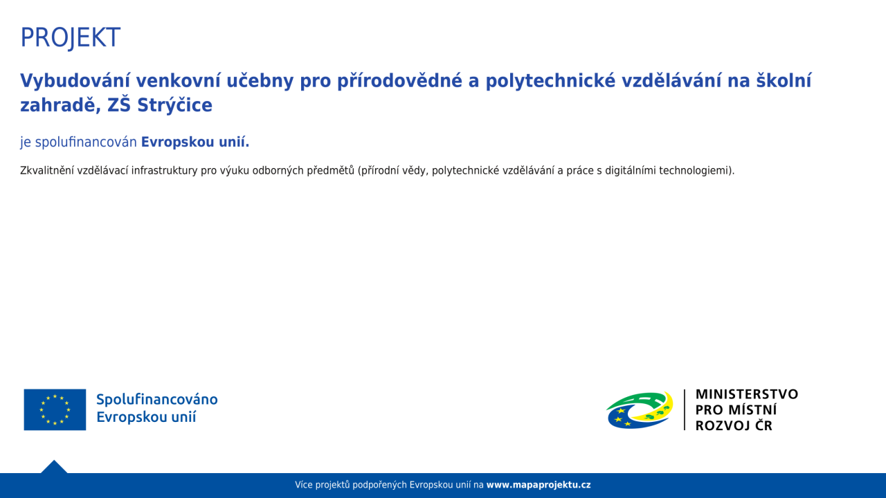 Vybudování venkovní učebny pro přírodovědné a polytechnické vzdělávání na školní zahradě ZŠ Strýčice.